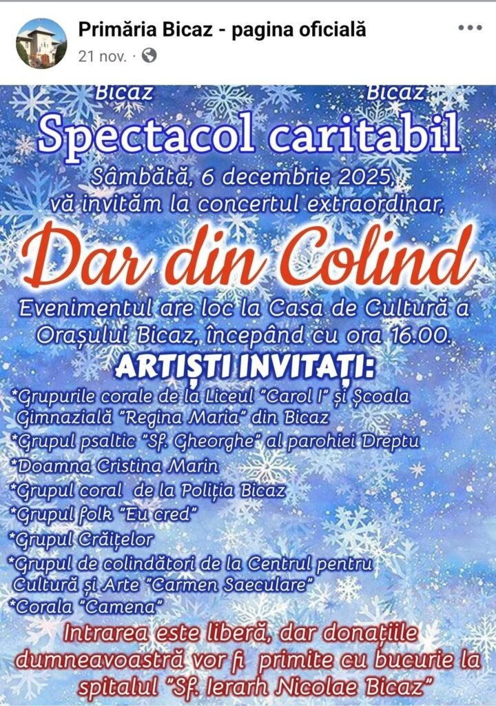 Singurul eveniment adus la cunoștința cetățenilor este o tentativă de concert caritabil, al cărui afiș este la fel de rece ca administrația locală din Bicaz.