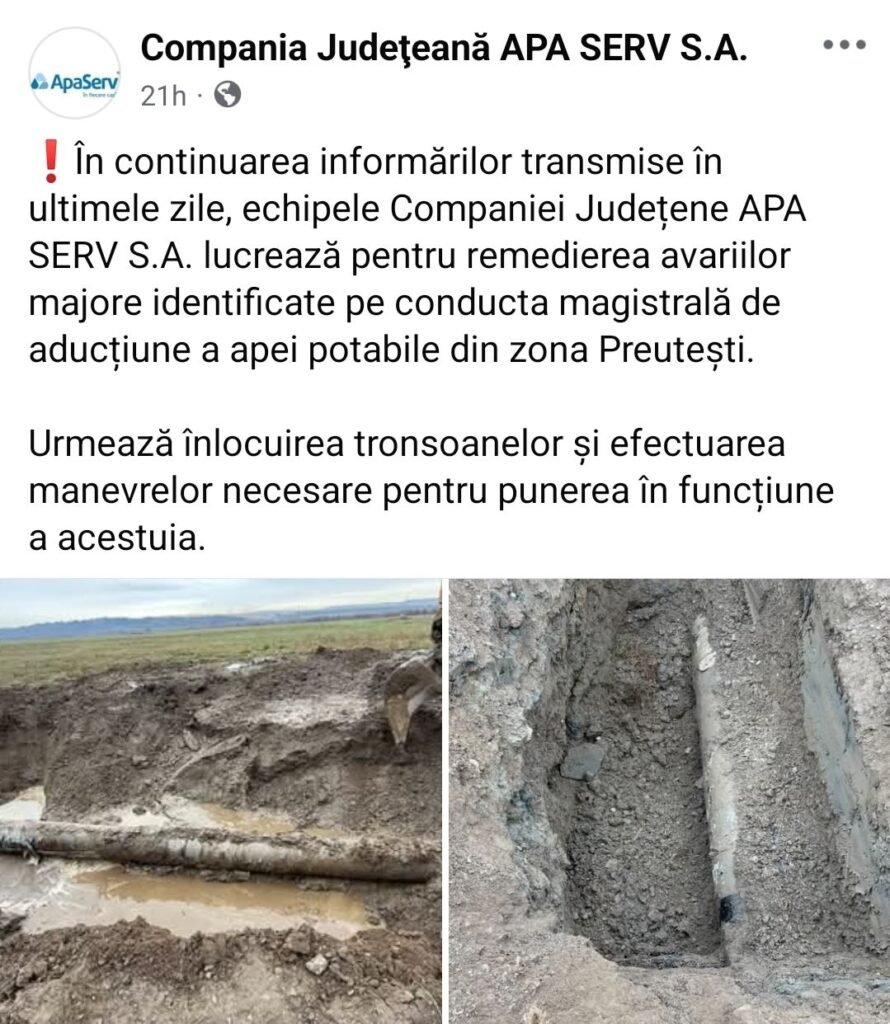 „Se întrerupe furnizarea apei pentru lucrări de remediere a unei avarii.”