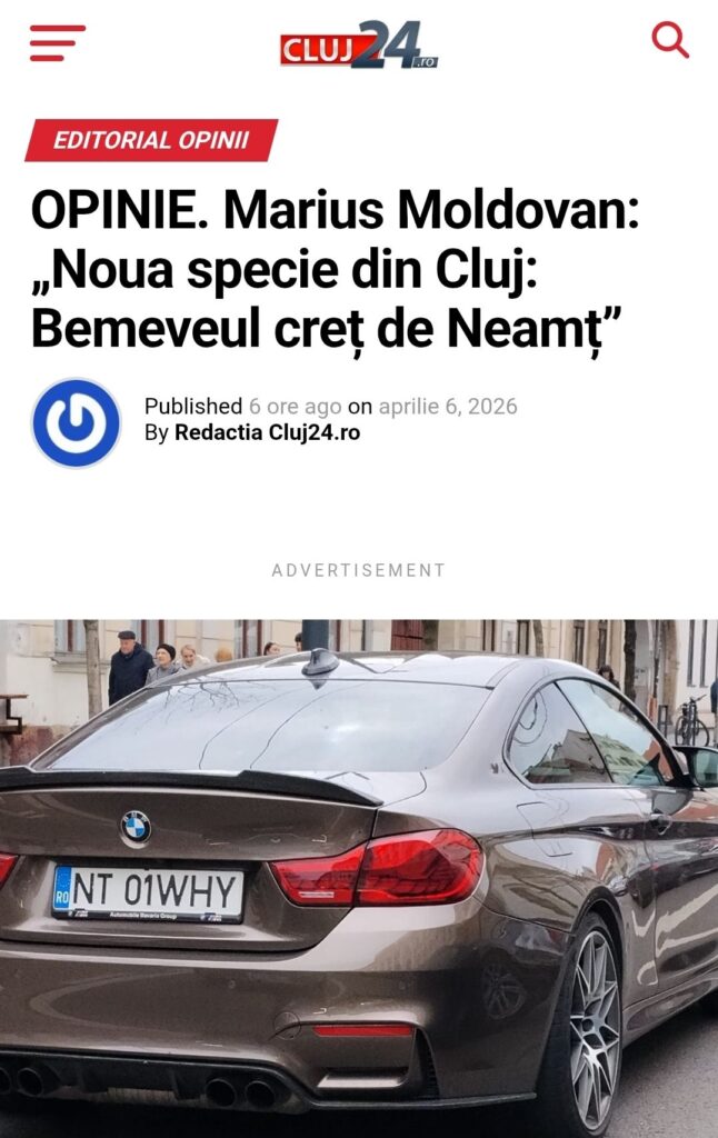 Apariția unui BMW cu numere de Neamț pe străzile Clujului i-a oferit unui autor local material suficient pentru un text plin de ironie, sarcasm și nerv urban.